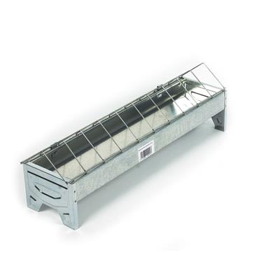 Stort galvaniseret fodertrug, der forhindrer dine fjerkræ/fugle i at sortere i foderet.