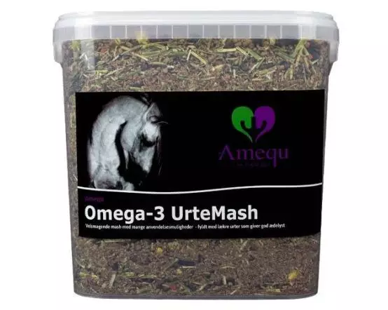 Der er ca. 450 g Omega-3 Urtemash i et Amequ fodermål
