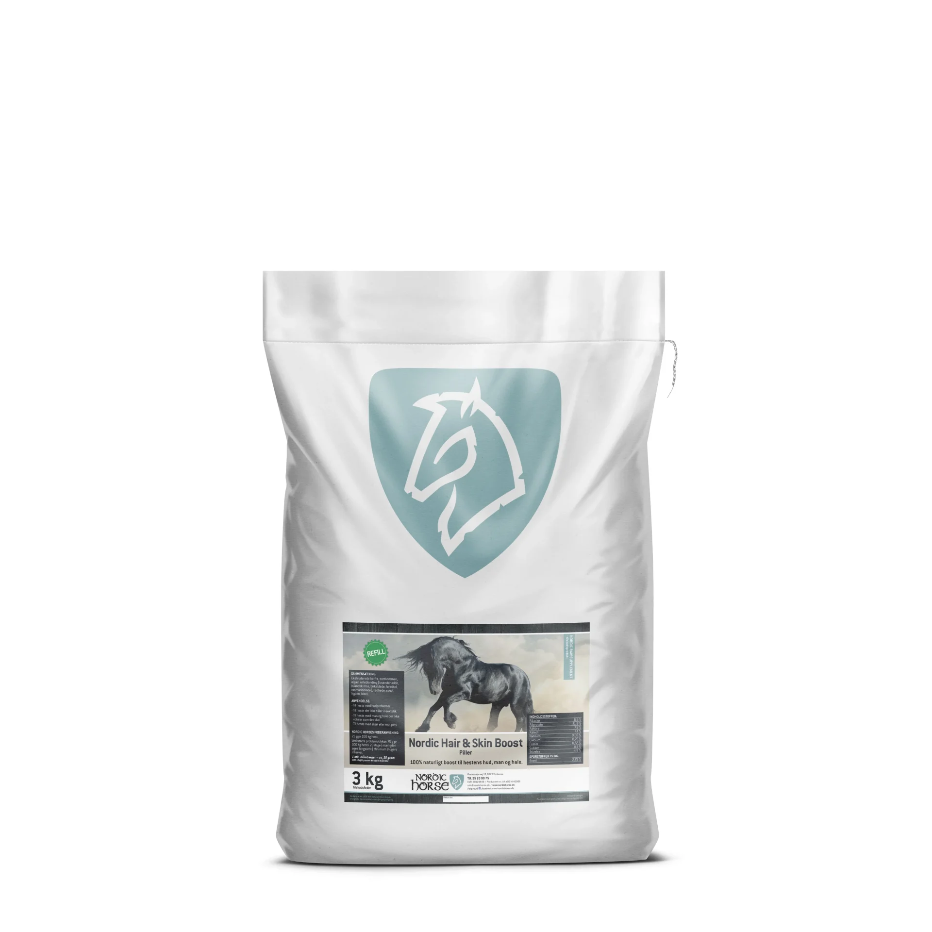 Nordic Hair & Skin Boost kan med fordel kombineres med Nordic Icelandic Seaweed og/eller Nordic Spirulina til heste med større hud/hår problematikker.