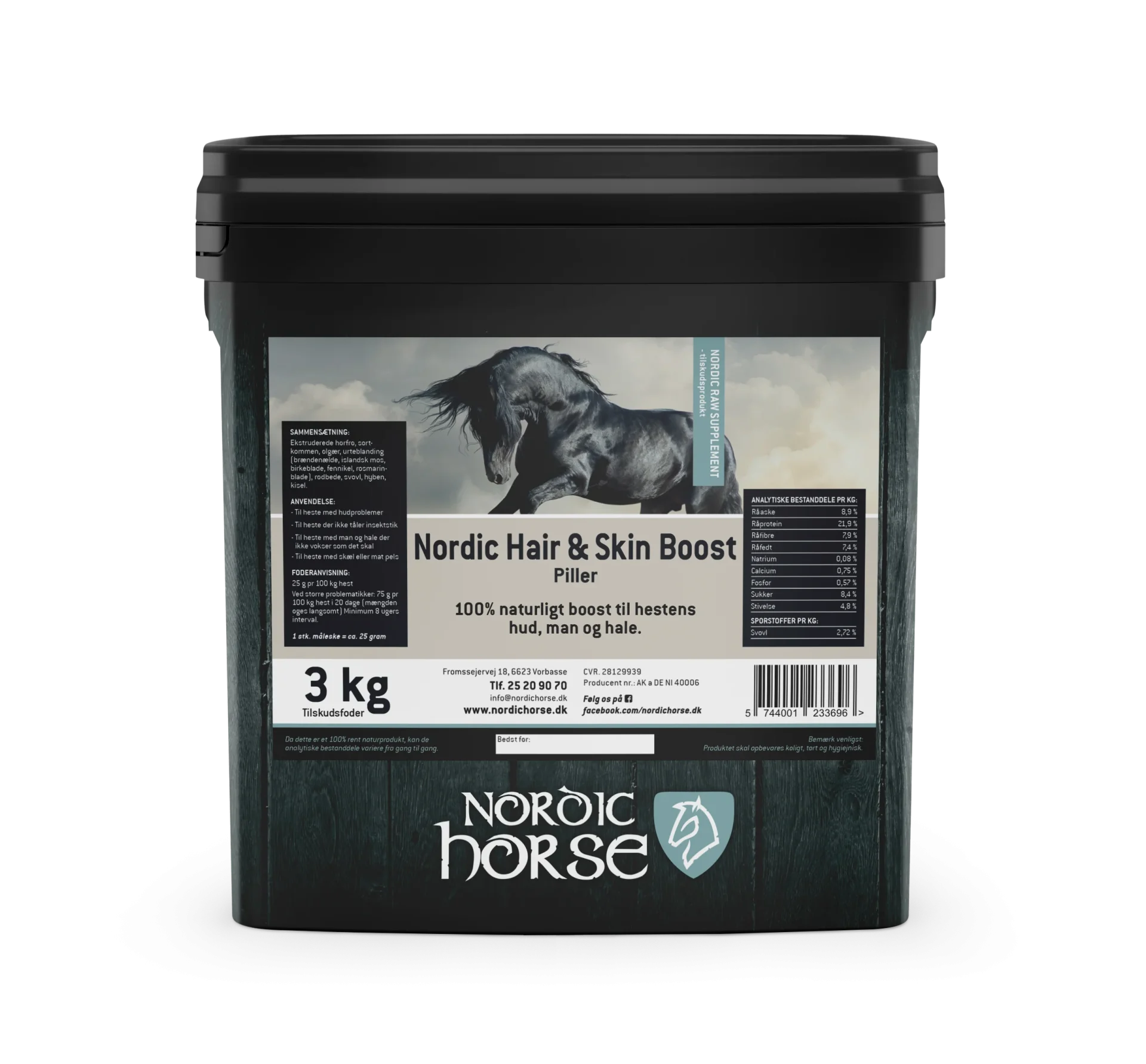 Nordic Hair & Skin Boost kan med fordel kombineres med Nordic Icelandic Seaweed og/eller Nordic Spirulina til heste med større hud/hår problematikker.