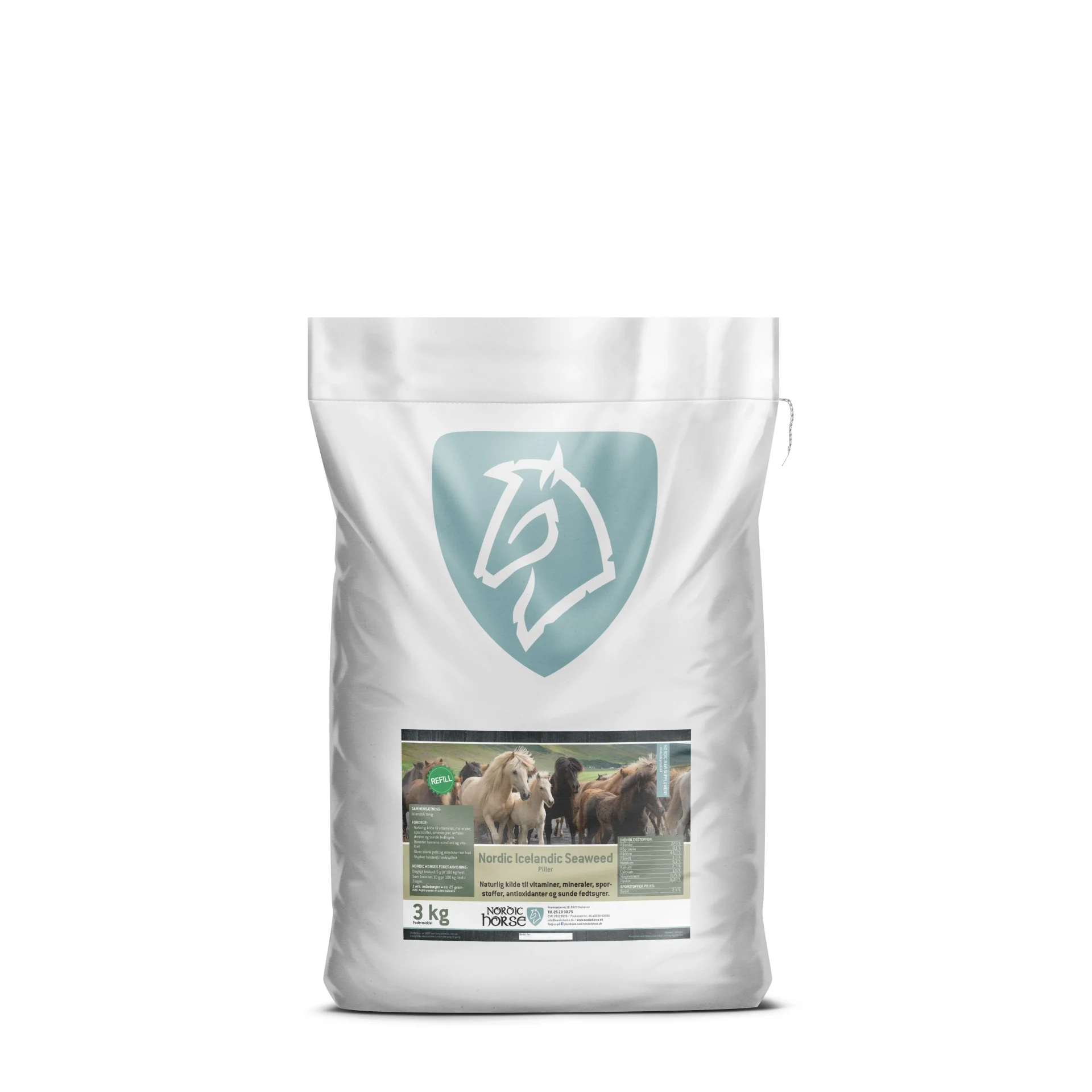 Nordic Icelandic Seaweed er 100% Islandsk Tang af højeste kvalitet. En ren, naturlig kilde til vitaminer, mineraler, sporstoffer, aminosyrer, antioxidanter og sunde fedtsyrer. Kan anvendes som et sundt dagligt tilskud, som et boost i perioder hvor hesten er ekstra belastet, eller til heste som har brug for et boost til hud, pels og hove.
