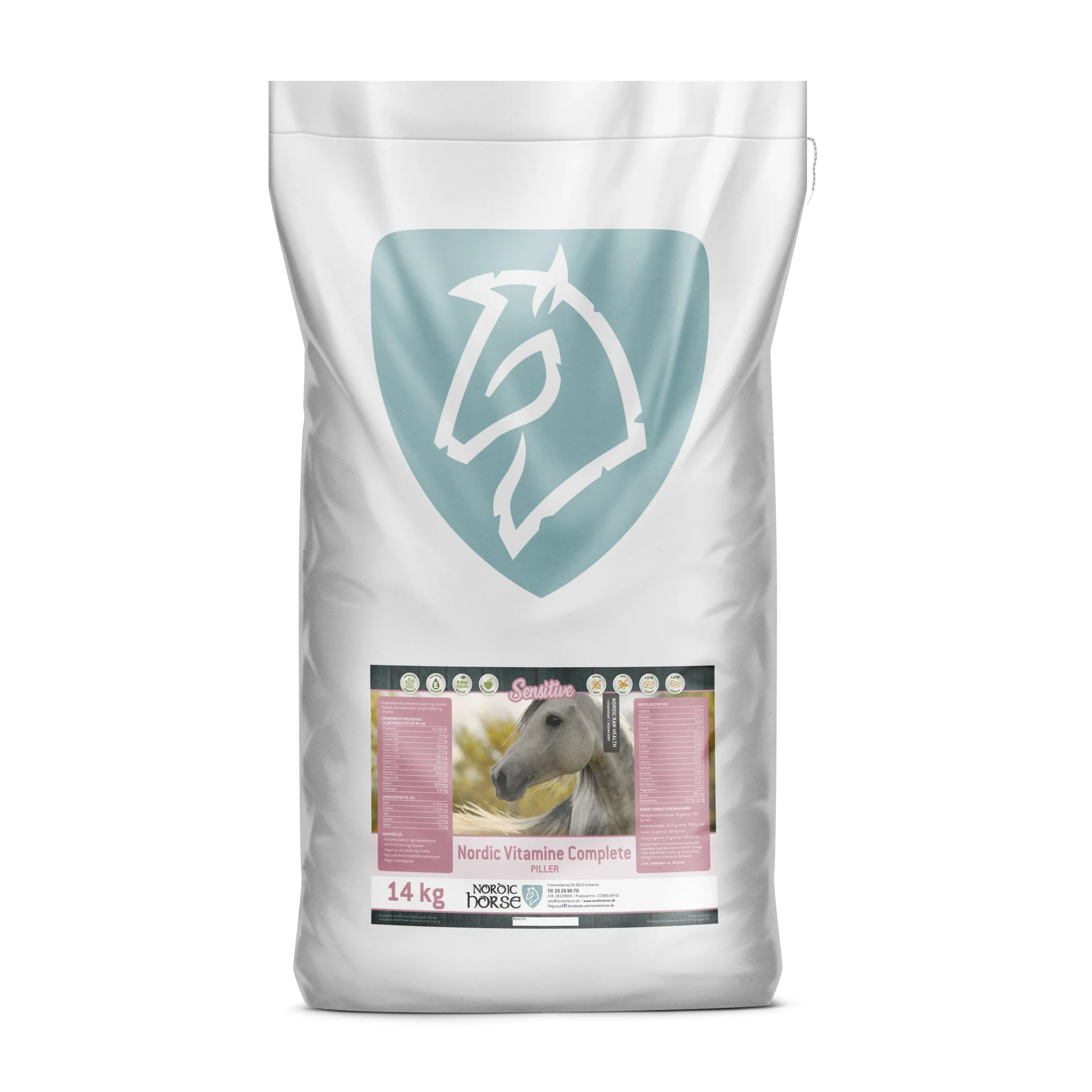 Nordic Vitamin Complete er desuden tilsat lysin, methionin og threonin (essentielle aminosyrer). Disse aminosyrer kaldes også for de begrænsende aminosyrer, da de resterende aminosyrer hesten indtager ikke kan udnyttes hvis hesten mangler disse tre i foderet. Mange heste får ikke nok kvalitetsprotein, og dermed essentielle aminosyrer, hvilket viser sig som manglende muskelsætning, vækstproblemer, dårlige hove osv. Ved tildeling af Vitamin Complete sikrer du ikke bare et optimalt indtag af vitaminer, mineraler og sporstoffer, men også en optimal tilførsel af essentielle aminosyrer, som indgår i mange af kroppens vigtige funktioner.