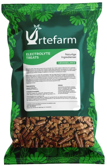 Ingredienser: NatriumKlorid, KaliumKlorid, Majsflager, Dextrose, Ærteflager, Æble, Johannesbrød, Lucerne, Varmebehandlet hvede, Varmebehandlet byg, Mynte, Melasse, Honning, Rødebedestykker, Gulerodsstykker, Natriumbicarbonat.