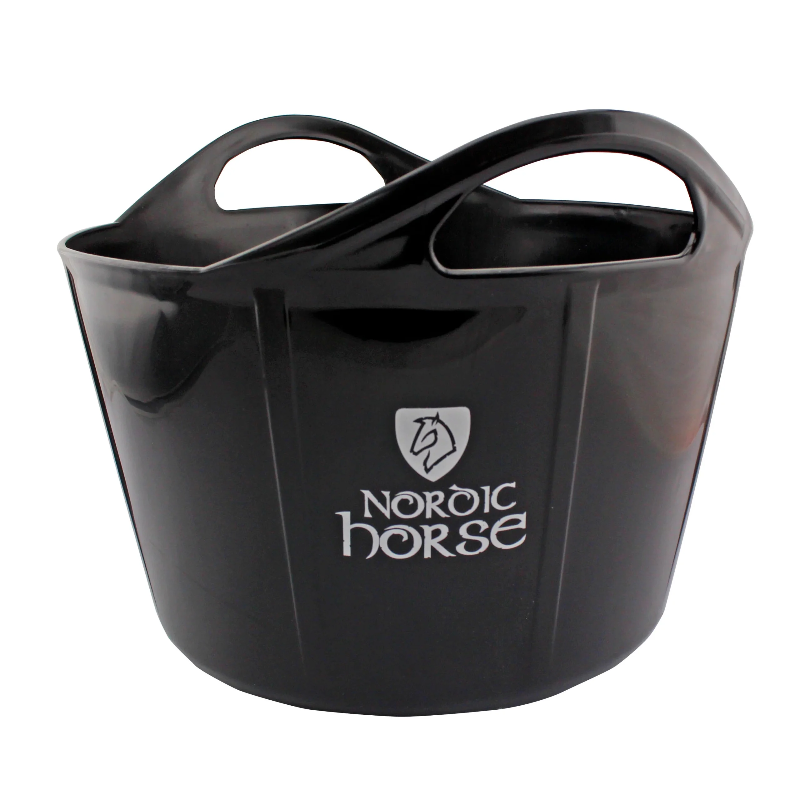 Sort flexispand med Nordic Horse sølv-logo. Kan rumme 17 liter og er derfor perfekt til bl.a. fodring, opbevaring, stævner mm.