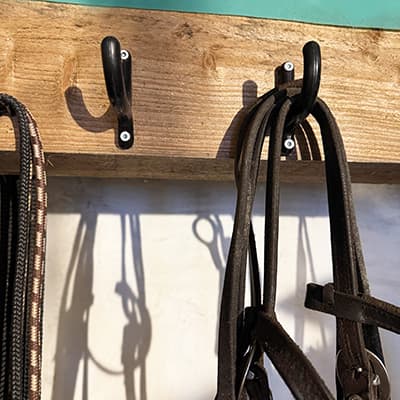 OPHÆNGSKROG STOR - 2 STK Blød og fleksibel staldkrog, ideel til grimer, trense, hønet og andre ting, der skal være let tilgængelige. Den bløde og fleksible konstruktion gør krogen sikker at bruge i smalle passager eller steder, hvor der er risiko for, at dyr går imod den. Mål: 80 × 70 × 20 mm Vægt: 16 g Materiale: TPE, FZB Farve: sort
